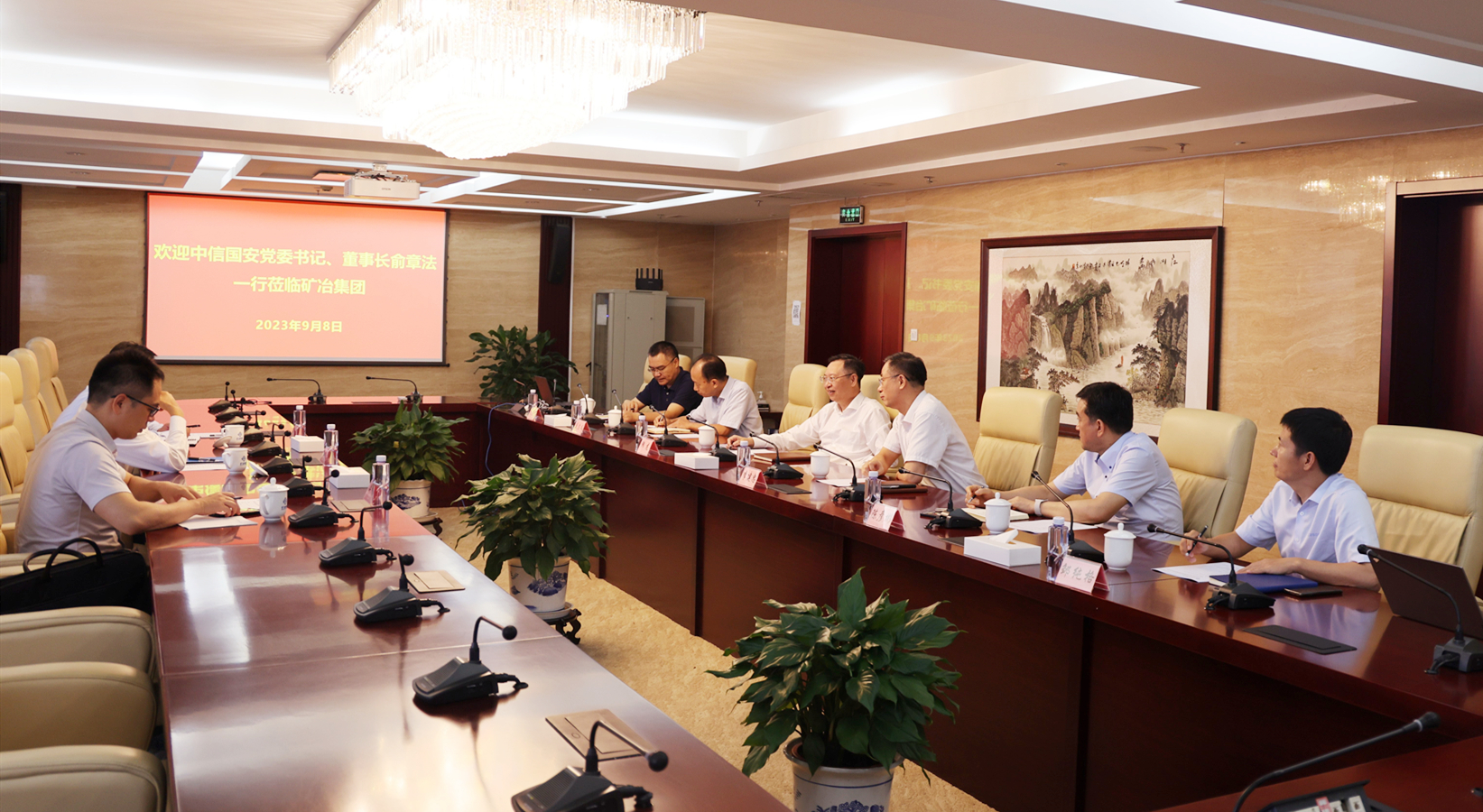 9月8日,集團黨委書記、董事長韓龍在集團總部會見中信國安黨委書記、董事長俞章法,雙方就加強合作進行座談交流。礦冶集團副總經理、當升科技董事長李建忠,當升科技黨委書記、董事、總經理陳彥彬參加會議。