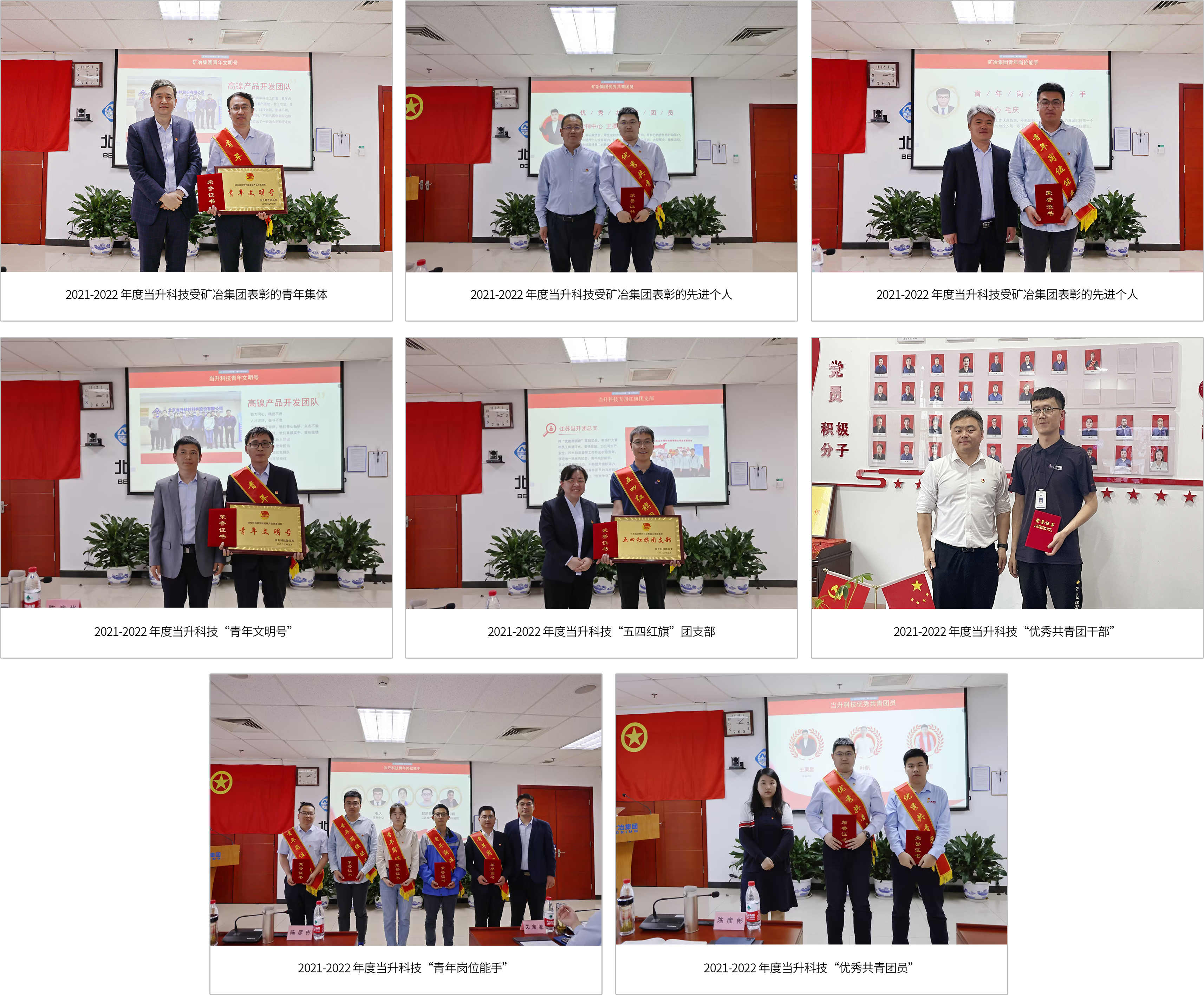 會上宣讀了優秀集體和個人名單,并向獲獎代表頒發了獎牌和榮譽證書。2021-2022年度,先后有2名個人、1個集體榮獲礦冶集團表彰;有2個集體、9名個人榮獲公司表彰。